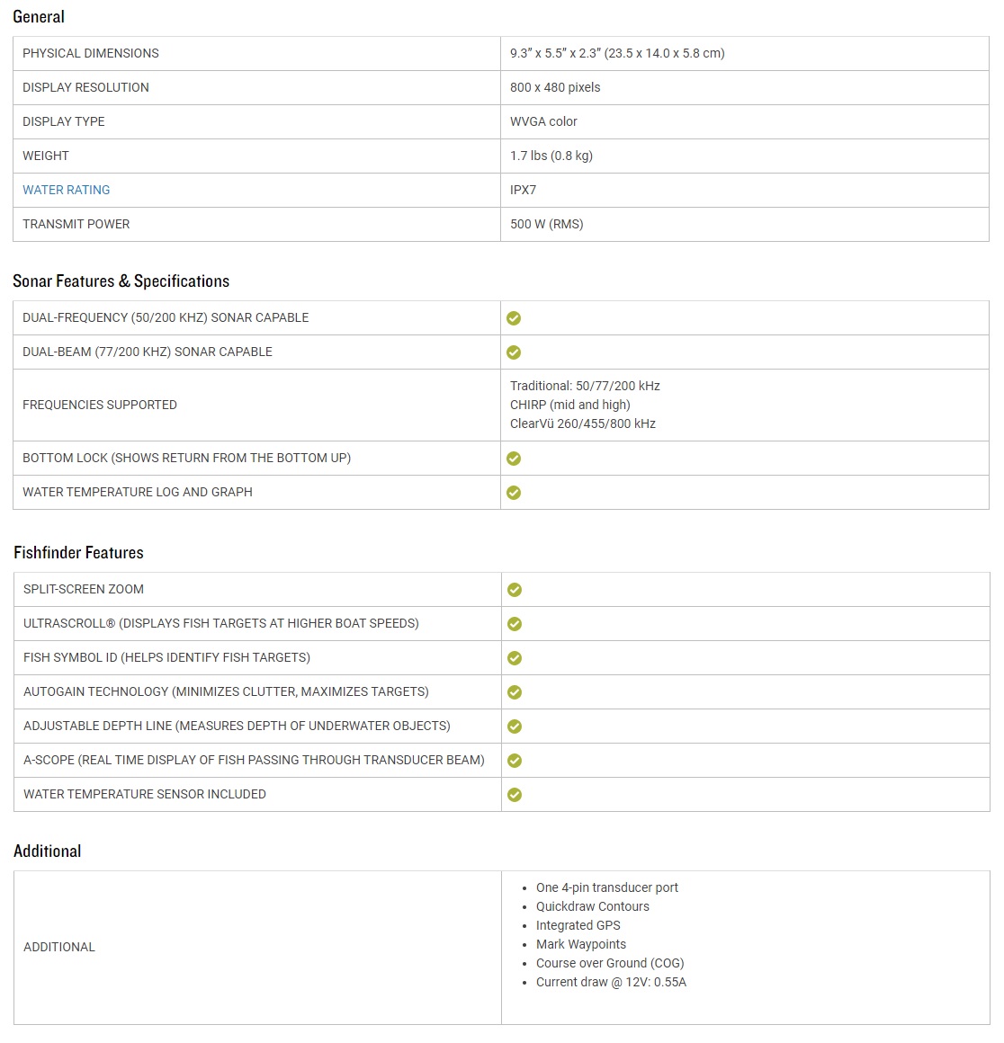 THE CHOICE IS YOURSSee fish and structure in maximum detail when you pick your display color, your location and your sonar for your day on the water with the STRIKER Vivid 7cv fishfinder with transducer. The sonar color you pick says a lot about your fishing style. Good thing there are 7 new vivid options. What a view. Use the included transducer to get CHIRP traditional and ClearVü sonars. Never lose a hot spot again. Use waypoint marking to find your way back. What’s under the water’s surface looks pretty good as 1' contours, just saying. Wi-Fi® connection1 on land opens up a world of possibilities on the water.
